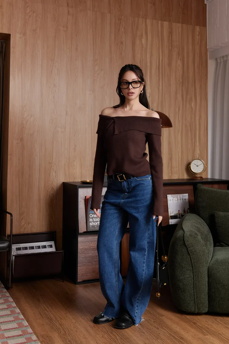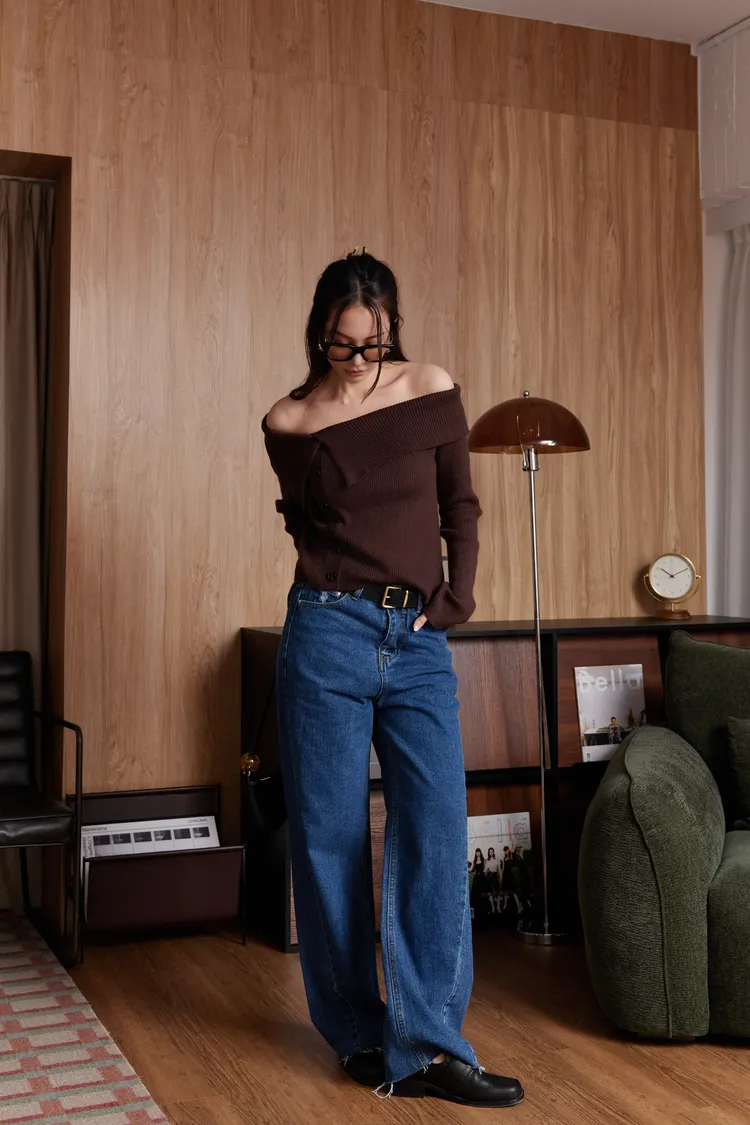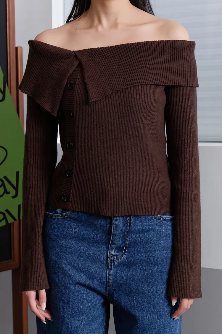 翻領排釦針織上衣(咖)