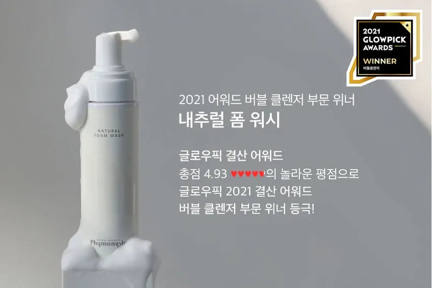 Phymongshe泡沫潔顏慕斯2021年韓國Glow Pick美妝網站評比 4.93 好評,位居清潔產品第一 !