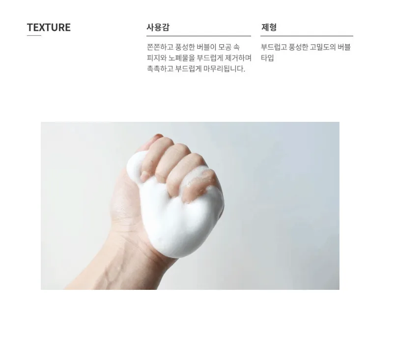 像鮮奶油一樣的綿密泡泡,減少因摩擦引起的肌膚敏感,無須大力搓揉即可帶走毛孔深處堆積的髒污與多餘油脂,