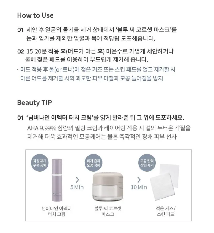 輕輕塗抹於面部(略過眼睛/嘴巴周圍),停留10-15分鐘後洗淨。
