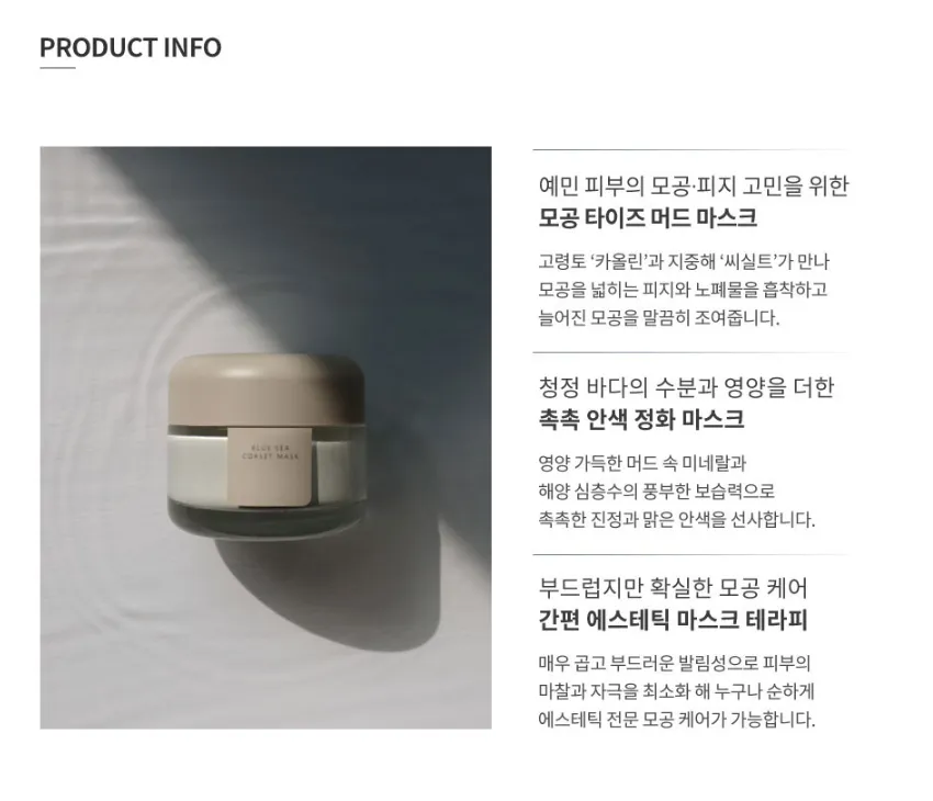藍海毛孔泥膜,使用夏威夷海洋深層水及地中海營養泥,豐富礦物質的作用外,也因為泥膜的吸附力高,可以緊密貼合肌膚,