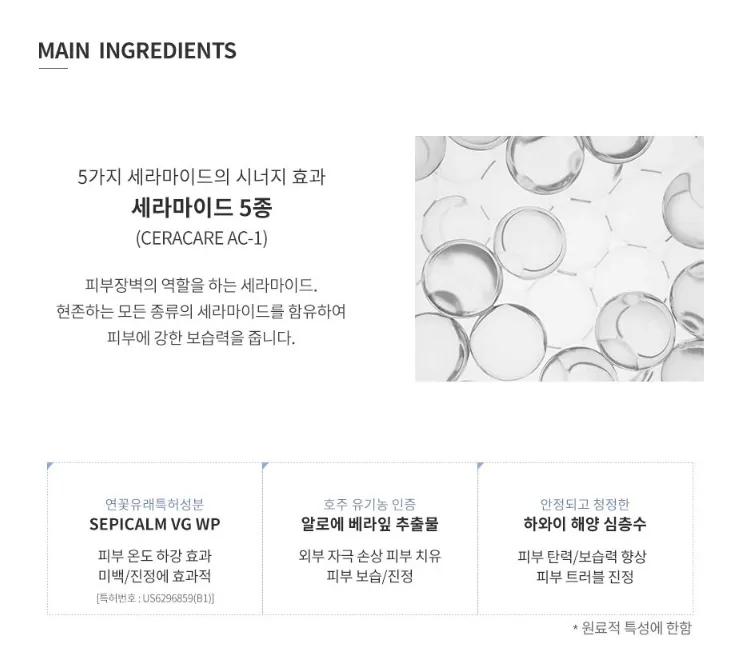 深層海水提取物及和睡蓮萃取為基礎,舒緩並鎖住肌膚水分,輕盈不死白、不黏膩,讓肌膚全天飽水,充滿光澤。