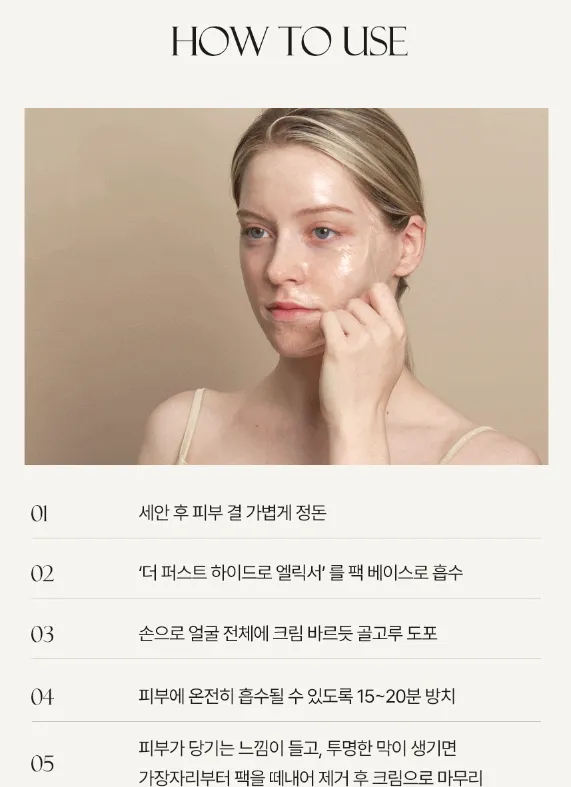 當皮膚感覺緊繃並形成透明薄膜時,從邊緣開始撕除下面膜即可,最後塗上面霜。