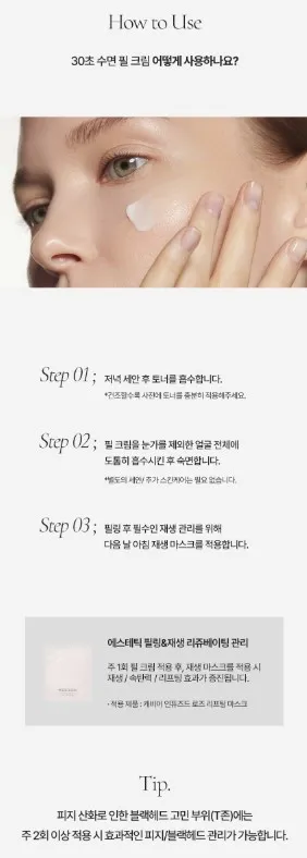 晚上化妝水後,避開眼部,將去角質霜均勻塗抹於整臉,吸收後直接入睡。無需再次潔面或使用其他護理品。